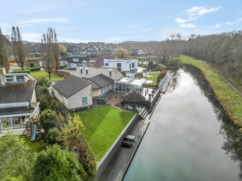 De zithoek met mogelijkheid tot een kachel is sfeervol en ruim, voorzien van een houten vloer en neutrale afwerking. De overgang naar het eetgedeelte is speels met een tegelvloer en veel lichtinval. Via de schuifpui bereik je de tuin, waar een overkapping direct aan huis zorgt voor schaduw en verkoeling. Extra comfort wordt geboden door een airco in het woongedeelte.